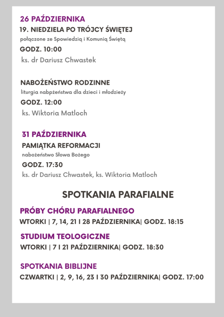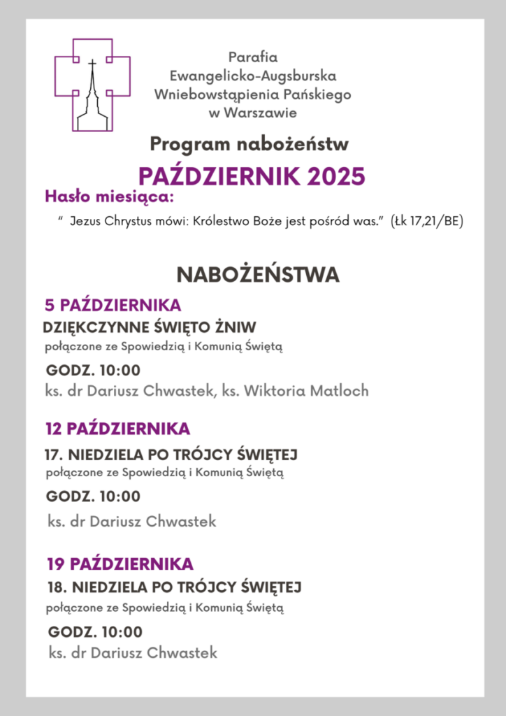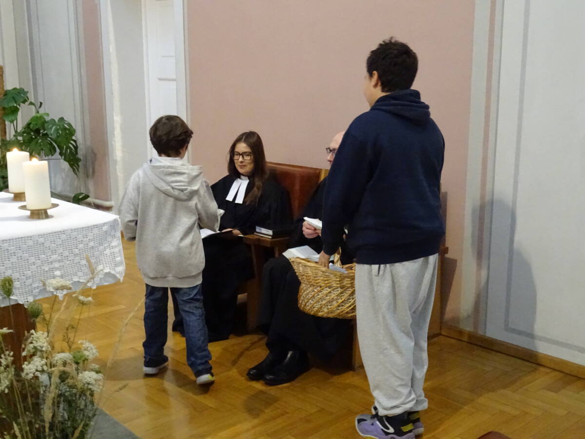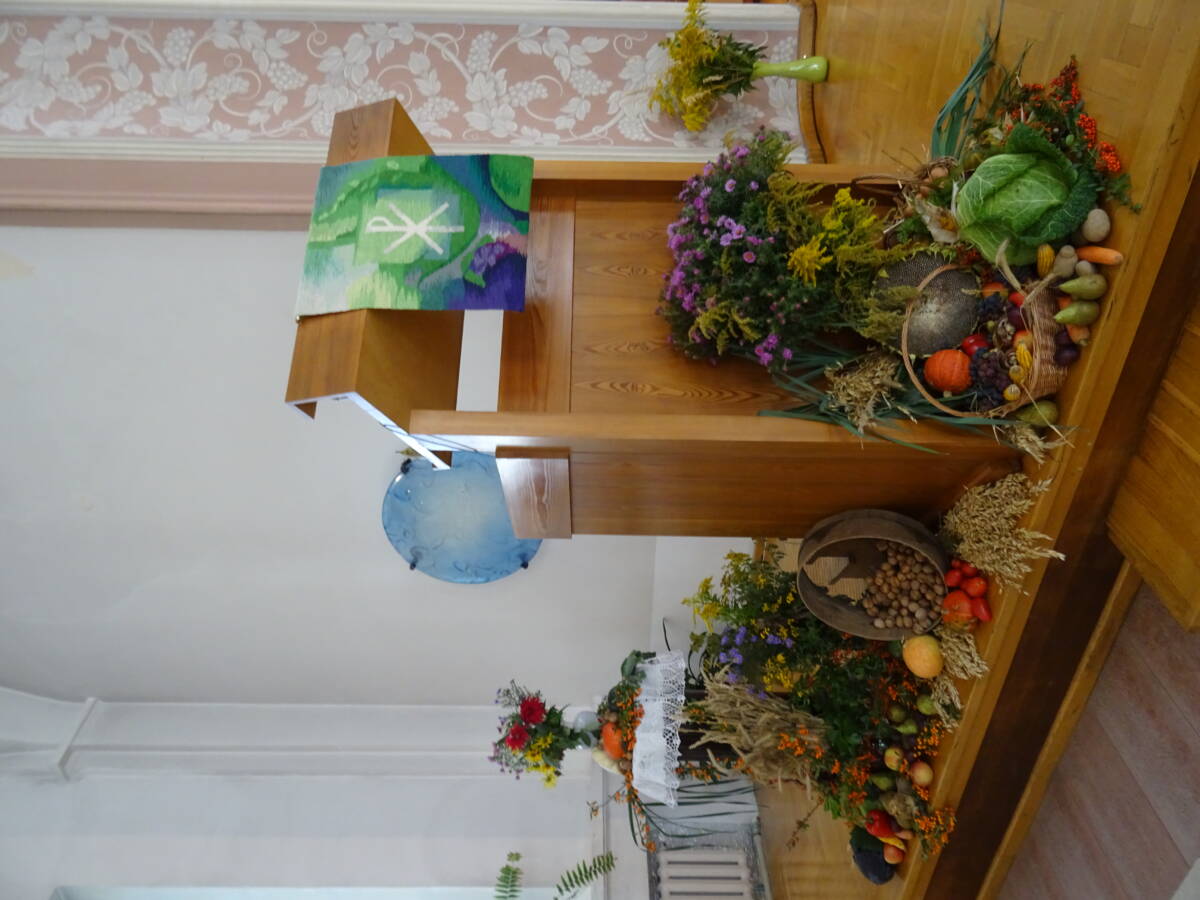 Tegorocznemu nabożeństwu towarzyszył chór parafialny, który wykonał dwie pieśni dziękczynne, a także dzieci z naszej Parafii. Serdecznie dziękujemy wszystkim zaangażowanym w przygotowanie wspólnego przeżywania tego świątecznego dnia. Wyrazy wdzięczności kierujemy zarówno za piękny wystrój kościoła, który był pełen Bożych darów – warzyw i owoców, jak i za zorganizowanie pikniku parafialnego po nabożeństwie. Nie zabrakło również ważnego momentu symbolicznego podzielenia się “chlebkami” z każdym uczestnikiem nabożeństwa. Jesteśmy wdzięczni nie tylko za obfite plony, ale przede wszystkim za wspólnie spędzony czas i modlitwę.