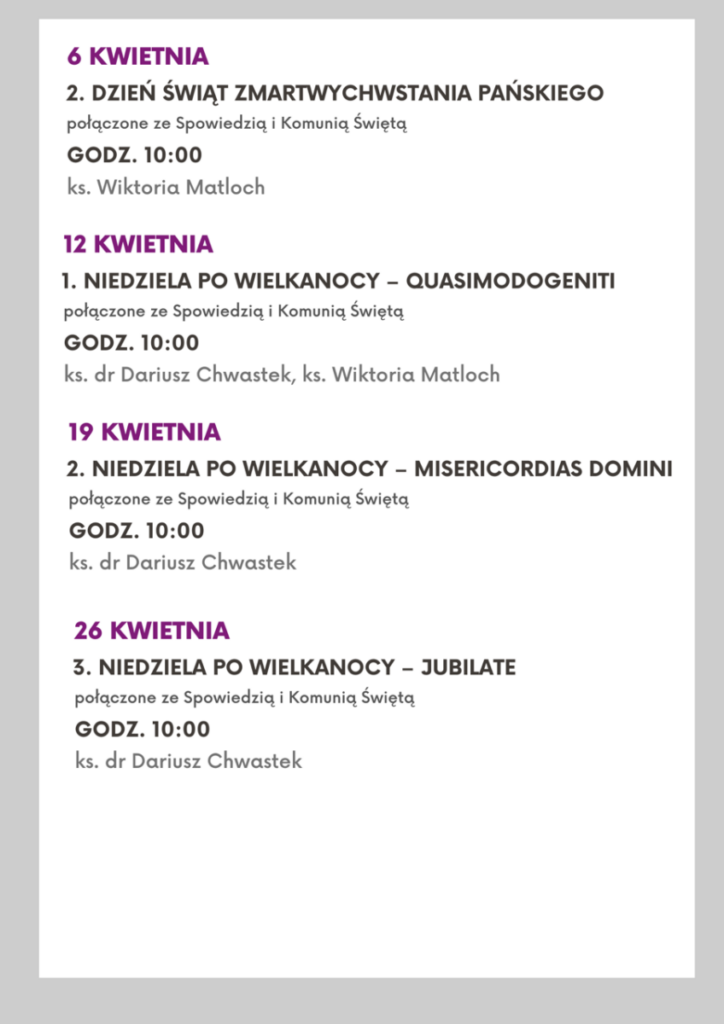 Święta Wielkanocne przypominają o Jego zwycięstwie nad śmiercią, w które my również jesteśmy włączeni. Świadomość ta – wynikająca z jednej strony z sakramentu Chrztu Świętego, a z drugiej z codziennego zaufania Zbawicielowi – pomaga przetrwać wszelkie trudności i pokonać wyzwania. Obdarowuje nas wytrwałością i przypomina, że nie ma sytuacji bez wyjścia! Zmartwychwstały Pan ma moc nadawania sensu naszemu życiu, uzdrawiania uczuć oraz wyprowadzania nas ze smutku ku radości i nadziei. On jest źródłem ciągle nowych sił do godnego radzenia sobie z teraźniejszością oraz otwiera przed nami nowe horyzonty i możliwości.